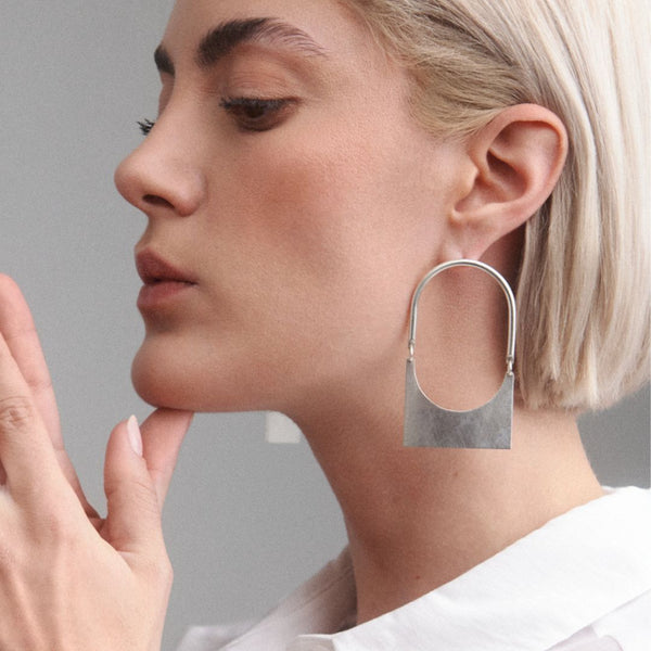 Composées d'un fil rond et d'une plaque brossée. Articulées par 2 petits anneaux brossés. Modèle asymétrique disponible en 3 tailles.
